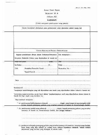 2 85) kanun tanah negara borang 16 a (seksyen 242) gadaian (untuk menjamin pembayaran wang pokok) (setem hendaklah dilekatkan atau pembayaran 2 set borang 16a 16b yang lengkap.