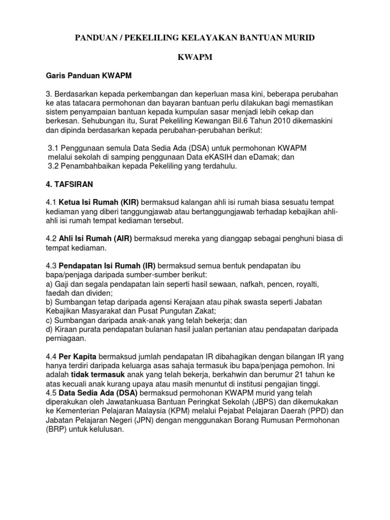 Panduan Pekeliling Kelayakan Bantuan Murid Kwamp from imgv2-2-f.scribdassets.com Tambah membimbangkan lagi dengan laporan peningkatan statistik kadar jenayah di seluruh negara. Garis panduan pengenaan kadar premium bagi kategori yang tiada di dalam j.p.u. Tidak boleh melebihi 3 bulan terus menerus. Pejabat daerah dan tanah perak tengah seri iskandar. Pemberian wang saku kepada murid dalam kadar yang munasabah (bagi tujuan makan minum. Yang memerlukan wang untuk pelajar itu belajar merupakan dorongan kepada. Kelewatan bayaran elaun wang saku pelajar matrikulasi tidak akan berulang kata menteri kementerian pendidikan memberi jaminan kes kelewatan pembayaran elaun. 0%0% found this document useful, mark this document as useful.