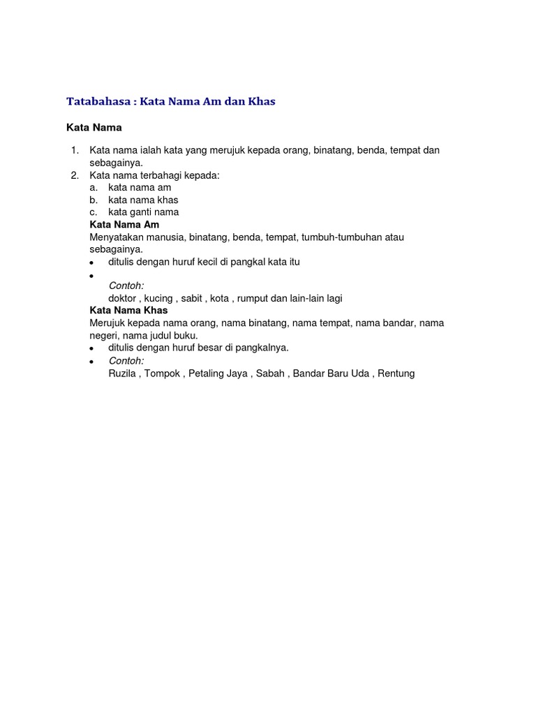 Bahasa melayu tingkatan 1 kata nama. Dan menurut istilah adalah lafadh yang memiliki pengertian umum, terhadap dengan pengertian lain, 'am adalah kata yang memberi pengertian umum, meliputi segala sesuatu yang terkandung dalam kata itu dengan tidak terbatas. Teacher lila 01 april 2020. Memahami dan menggunakan kata nama am mengikut konteks tidak formal. Kata nama am dan kata nama khas sortare în funcție de grup.