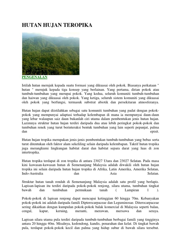 Hutan Hujan Tropika Malaysia / Antara Yang Berikut Yang Manakah Ciri Utama Tumbuh Tumbuhan Di Hutan Hujan Tropika I Mala : Kajian ekosistem hutan hujan tropika tanah pamah atau hutan dipterokap (lowland dipterocarp forest) bersama universiti malaysia terengganu di hutan lipur sek.