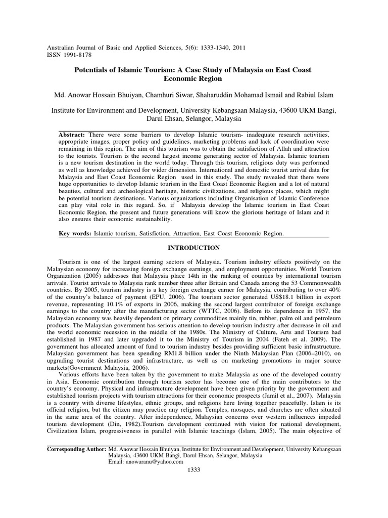 Malaysia was once ranked 9th in the world for tourist arrivals. Conclusion this paper is describing the features of islamic tourism in malaysia. Mohamaddin said malaysia acknowledges the potential of the islamic tourism sector as travellers from muslim countries, especially the middle east, are the biggest spenders in malaysia's tourism industry. Islamic tourism centre, putrajaya, malaysia. Director general islamic tourism centre (itc) ministry of tourism, arts & culture, malaysia.